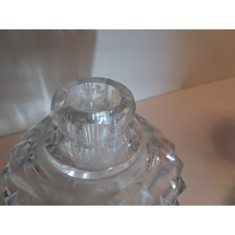 2. Petit flacon : +/- 13 cm +/- diam 7.5 cm 550 gr Son bouchon est également endommagé (voir photos).