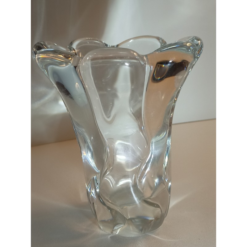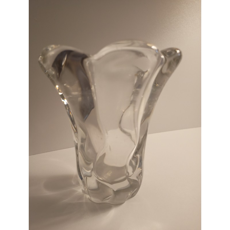 Superbe vase en cristal signé Daum France haut 15 cm décor ondulé