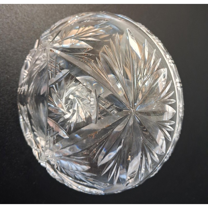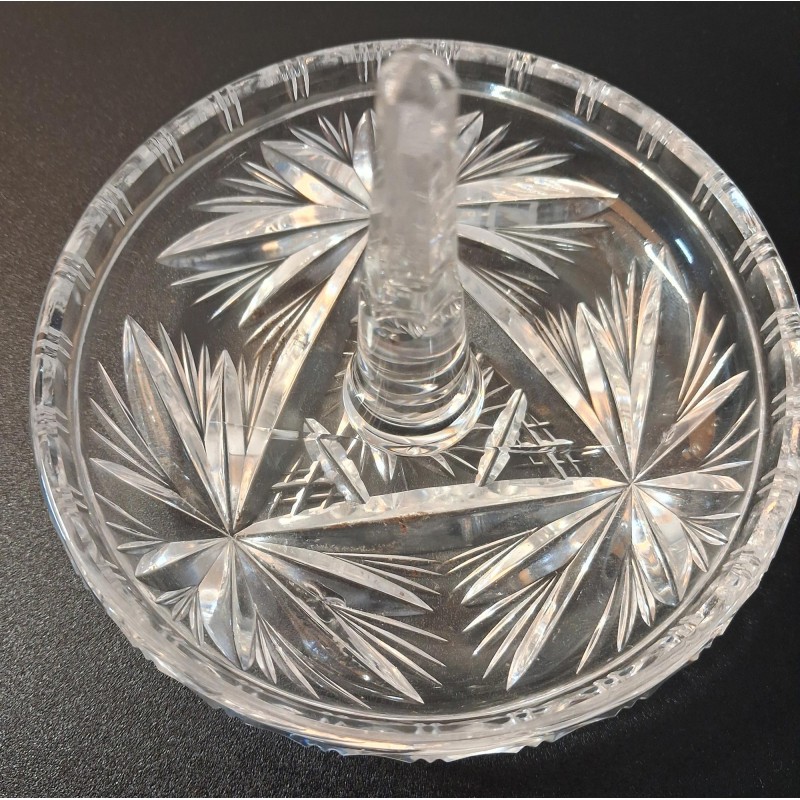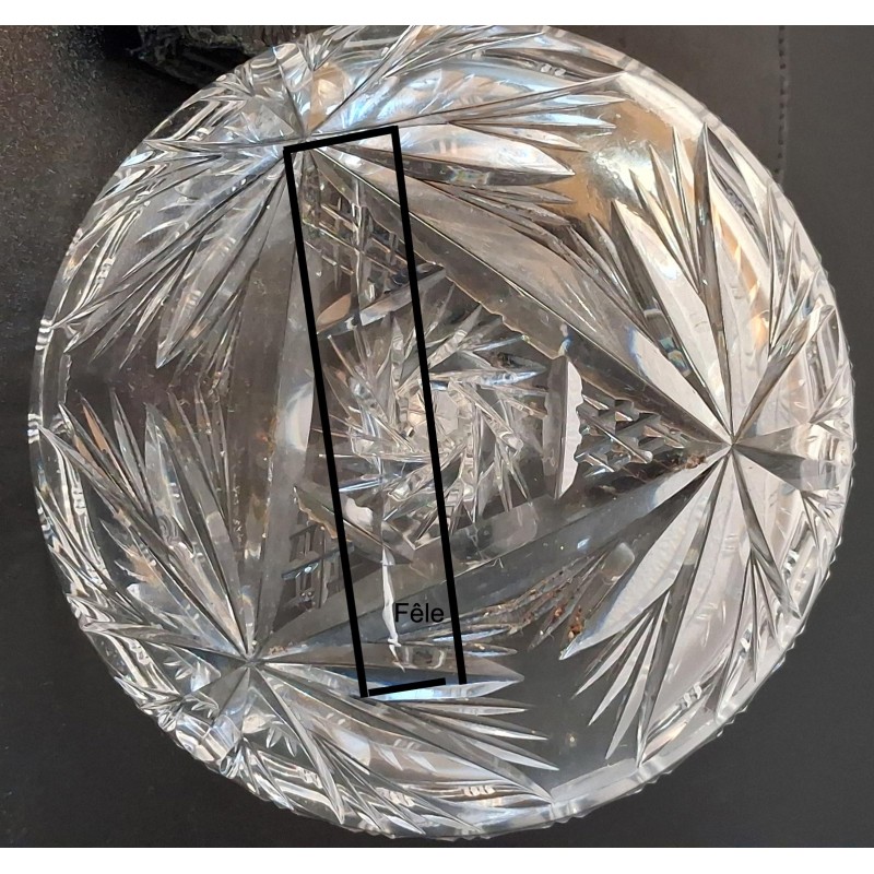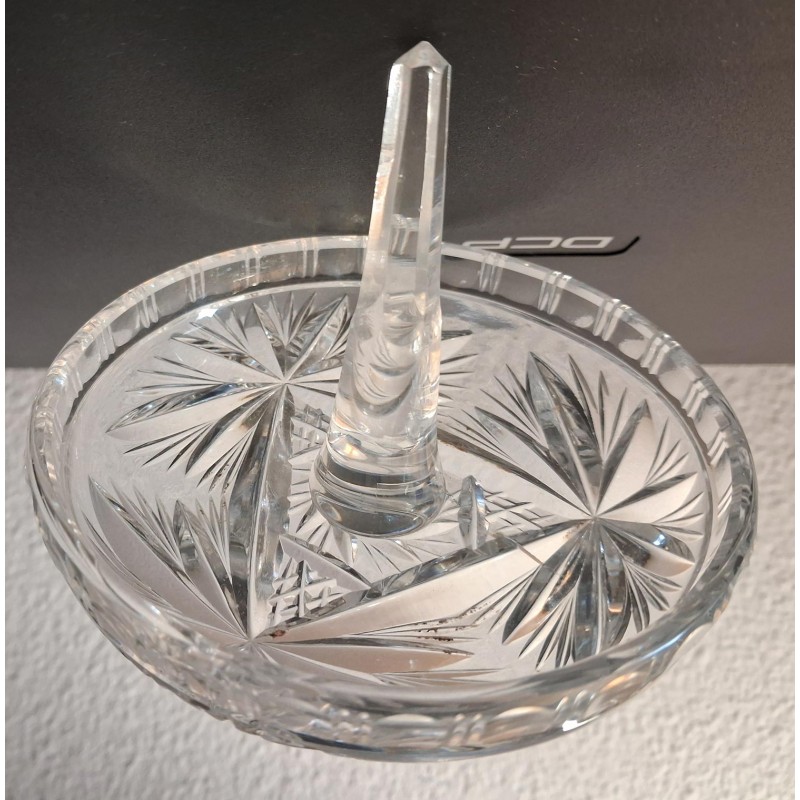 Baguier en cristal avec de beaux reflets Poids environ 320 gr Diamètre environ 11 cm Hauteur environ 8.7 cm Fêle très discret centre du plateau